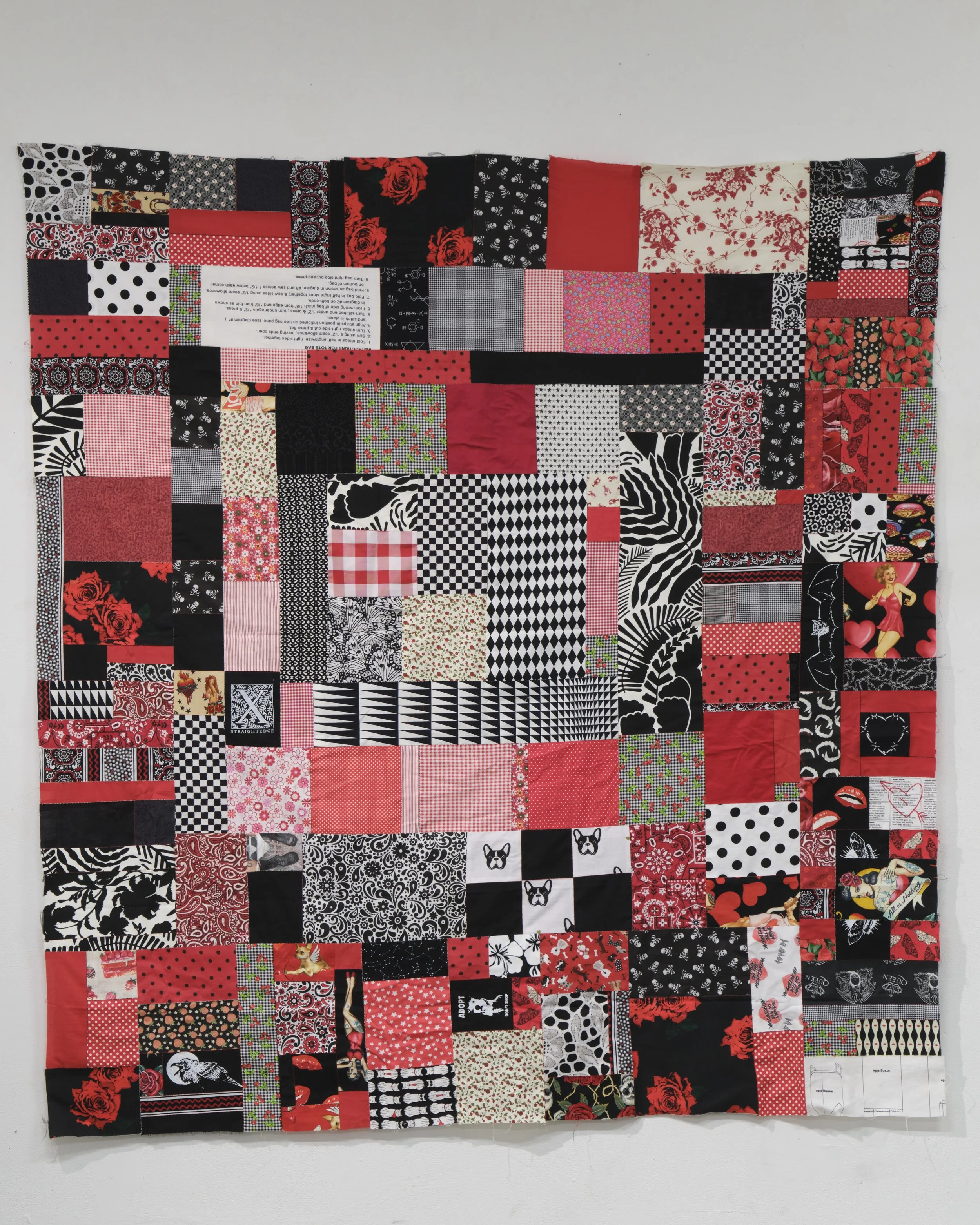 Self Portrait, 2023-2024, Fabric My Least Favorite Quilt, 2025, Cotton Fabric Coxcomb, 2025, Cotton fabric, embroidery