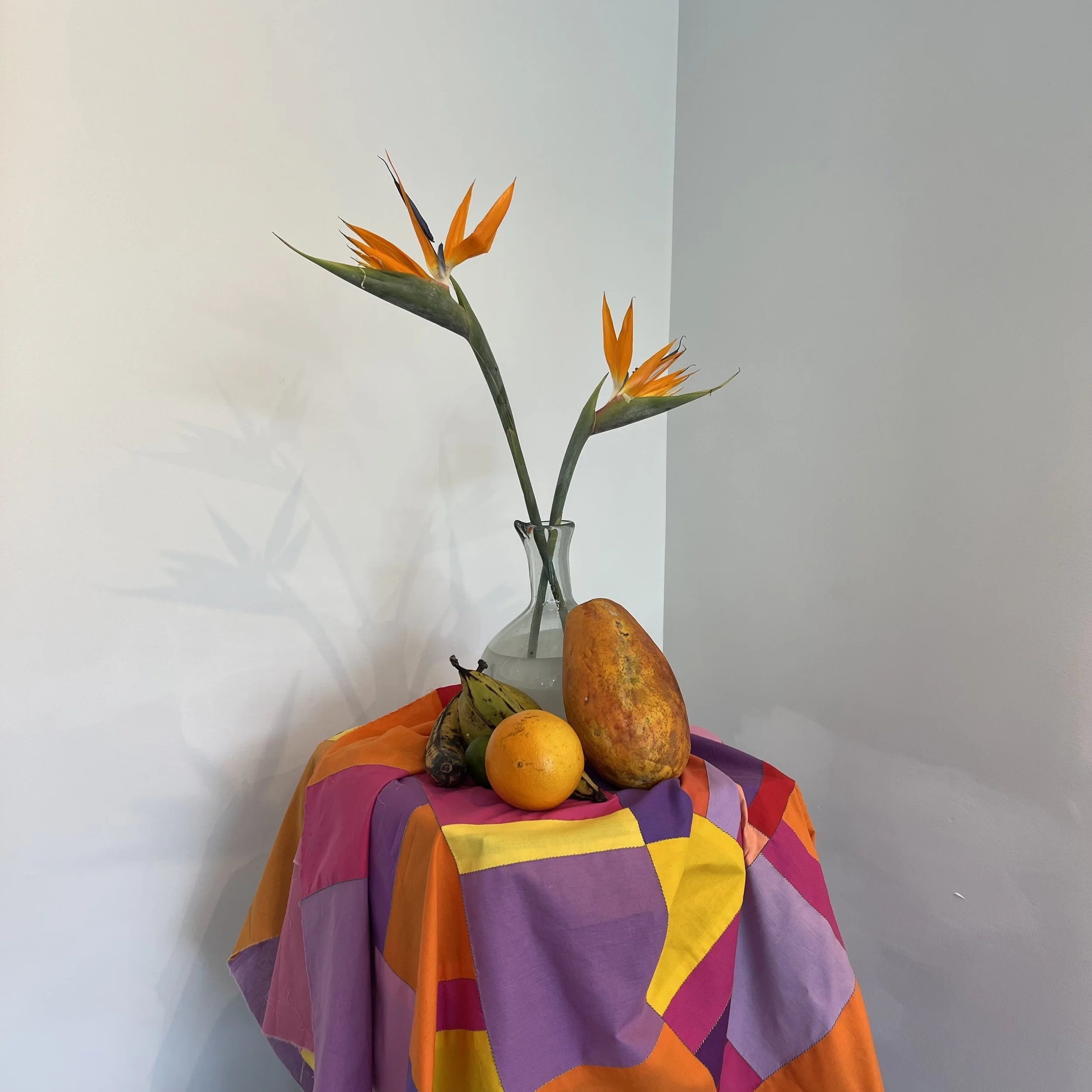Hand sewn cotton fabric, polyester thread. Floral arrangement done by Ken Marcelle.